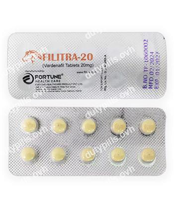 Filitra is an oral medication used to treat erectile dysfunction (ED) in men. It contains Vardenafil, a PDE5 inhibitor that enhances blood flow to the penis, helping to achieve and maintain a firm erection during sexual stimulation. Filitra is effective in restoring sexual function in men with mild to severe ED. It works only when sexual arousal is present.